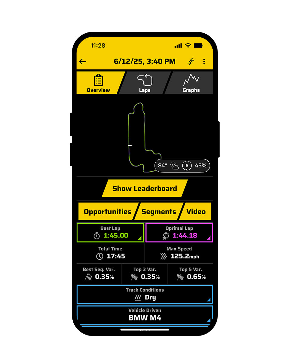 Get on track for your best achievable time with this compact all-in-one racetrack driving performance optimizer that provides real-time audio coaching1. After every session, review your performance data2 and see opportunities to save time.