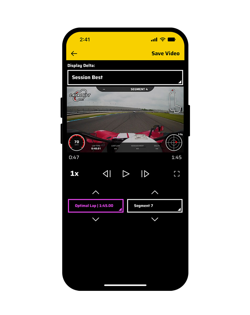 Our patented True Optimal Lap technology splices together your best achievable time into a single video based on lines you drove and can repeat.